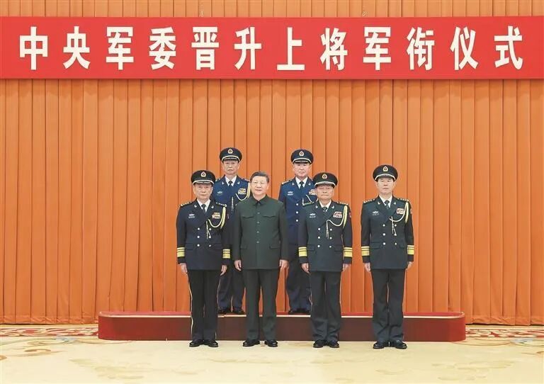 ཞི་ཅིན་ཕིང་གིས་དམག་འཛིན་ཆེ་འབྲིང་གི་གོ་རྟགས་སྤོར་བའི་ཤར་རྒྱུད་འཐབ་ཁུལ་གྱི་དམག་སྤྱི་དབྱང་ཀྲི་པིན་དང་དབུས་རྒྱུད་འཐབ་ཁུལ་གྱི་དམག་སྤྱི་ཧན་ཧྲེང་ཡན་ལ་བཀའ་རྒྱའི་ལག་འཛིན་གནང་བ་མ་ཟད་རྟེན་འབྲེལ་ཞུས། དམག་འཛིན་ཆེ་འབྲིང་གི་གོ་རྟགས་བཏགས་པའི་དམག་དཔོན་གཉིས་ཀྱིས་ཞི་ཅིན་ཕིང་ལ་གུས་འདུད་ཞུས་པ་དང་། མཛད་སྒོར་ཞུགས་པའི་བློ་མཐུན་ཡོངས་ལ་གུས་འདུད་ཞུས། ཚོགས་ར་ཡོངས་སུ་སྤྲོ་སེམས་འཁོལ་བའི་ཐལ་མོ་རྡེབ་སྒྲས་ཁེངས།