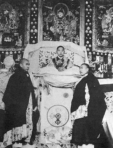 པཎ་ཆེན་སྐུ་ཕྲེང་བཅུ་གཅིག་པ་གདན་སར་འཁོད་པ།