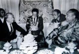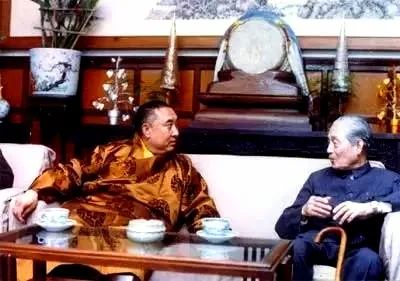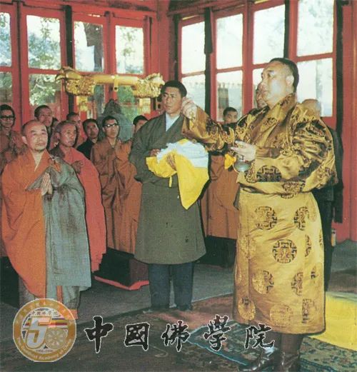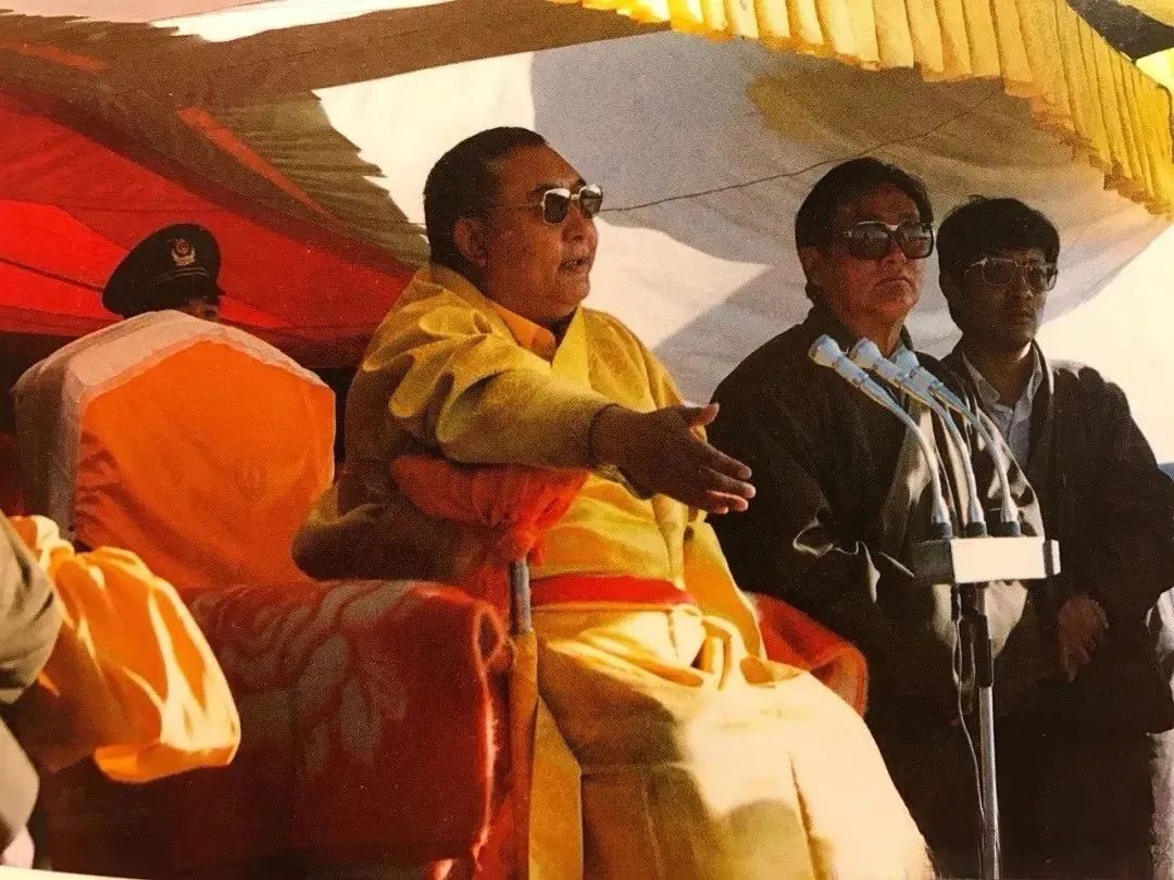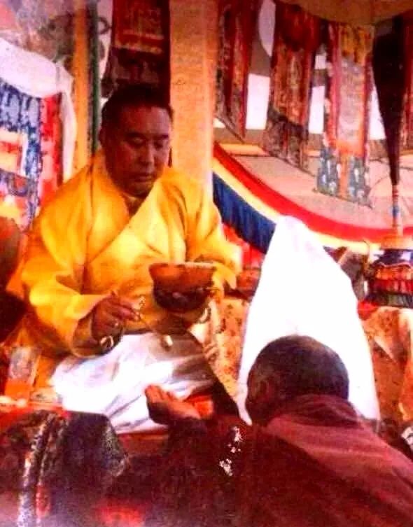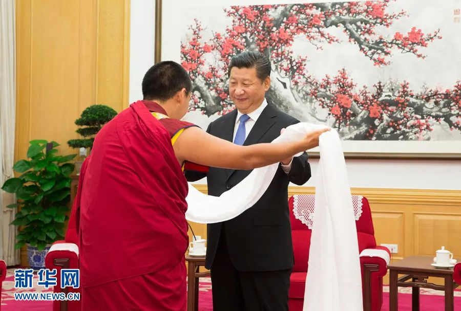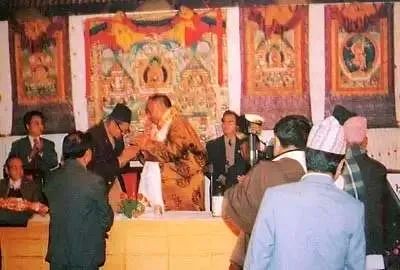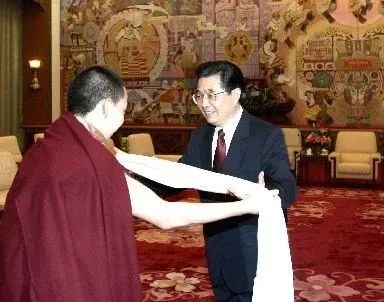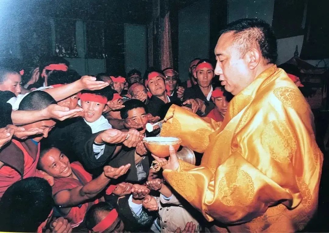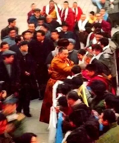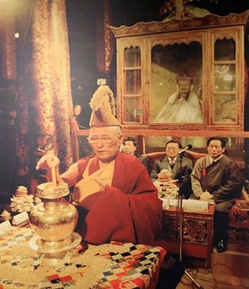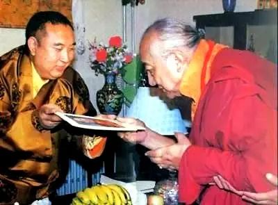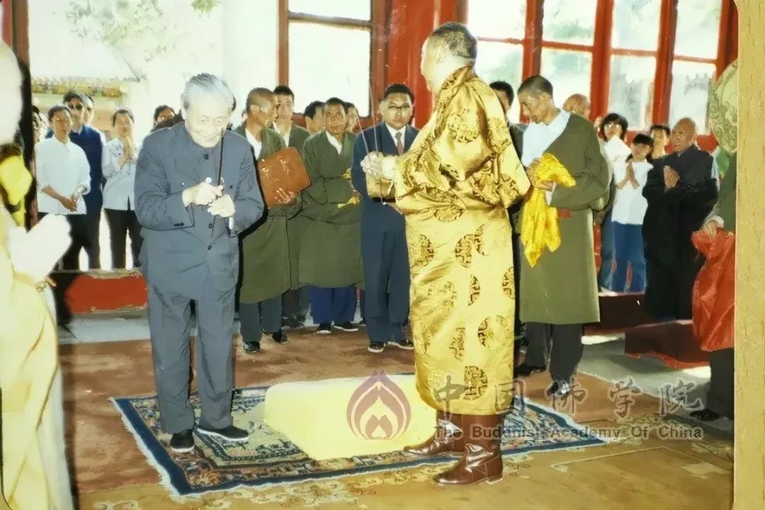ཀྲུང་གོ་ནང་བསྟན་མཐུན་ཚོགས་ཀྱི་ཚོགས་གཙོ་ཀྲའོ་ཕུ་ཁྲུའུ་ཡིས་པཎ་ཆེན་སྐུ་ཕྲེང་བཅུ་གཅིག་པར་མཇལ་བཞིན་པ།