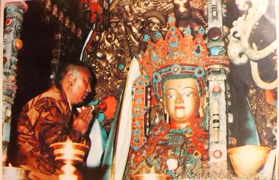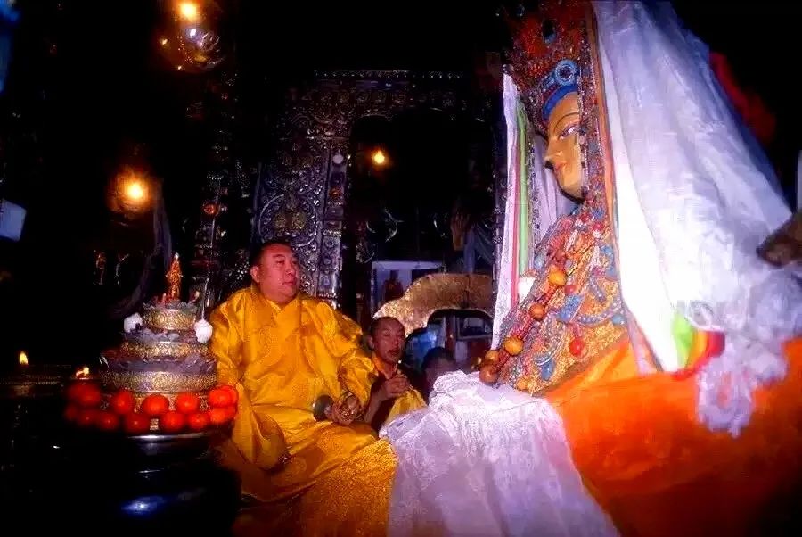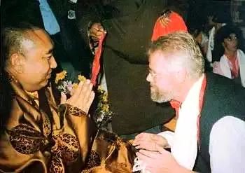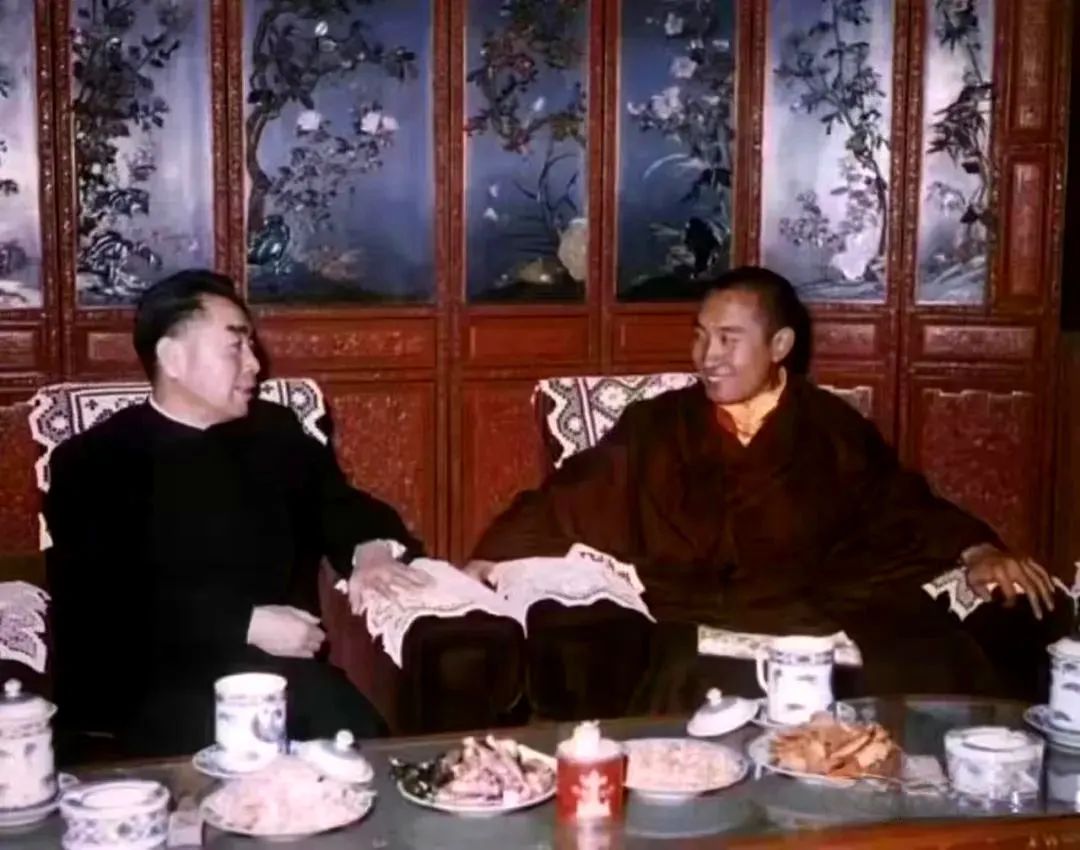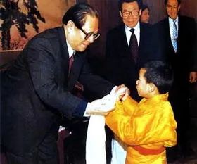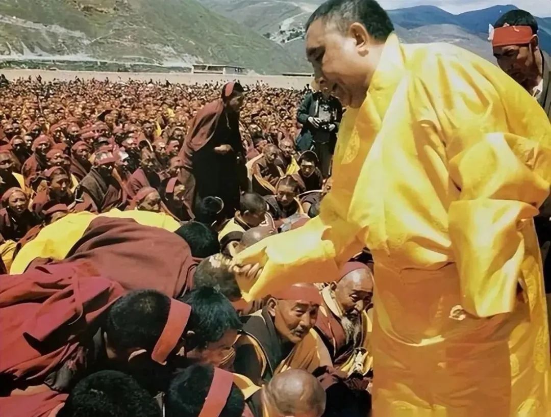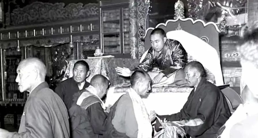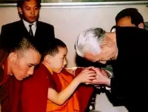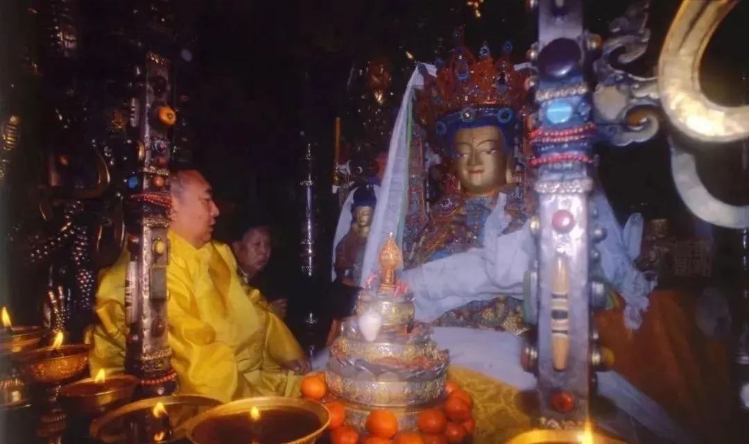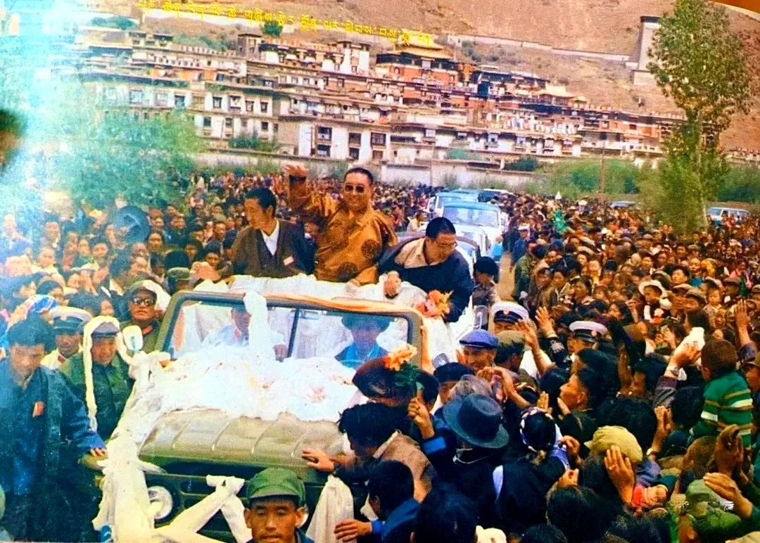 ཀྲུང་གོ་ནང་བསྟན་མཐུན་ཚོགས་ཀྱི་ཚོགས་གཙོ་ཀྲའོ་ཕུ་ཁྲུའུ་ཡིས་པཎ་ཆེན་སྐུ་ཕྲེང་བཅུ་གཅིག་པར་མཇལ་བཞིན་པ།