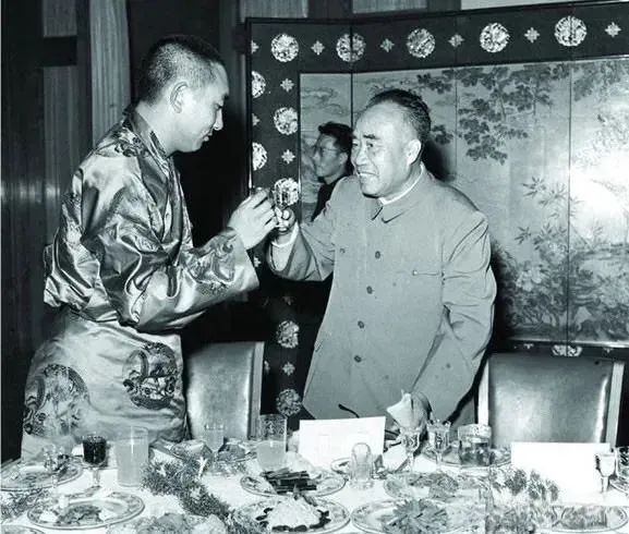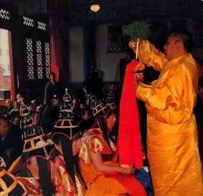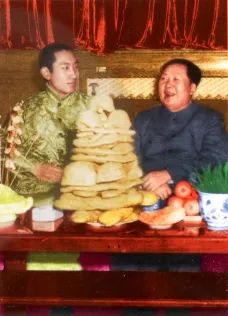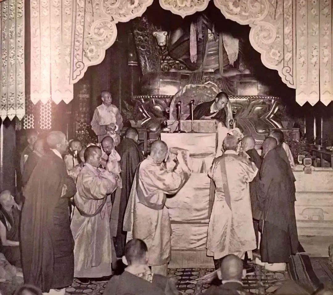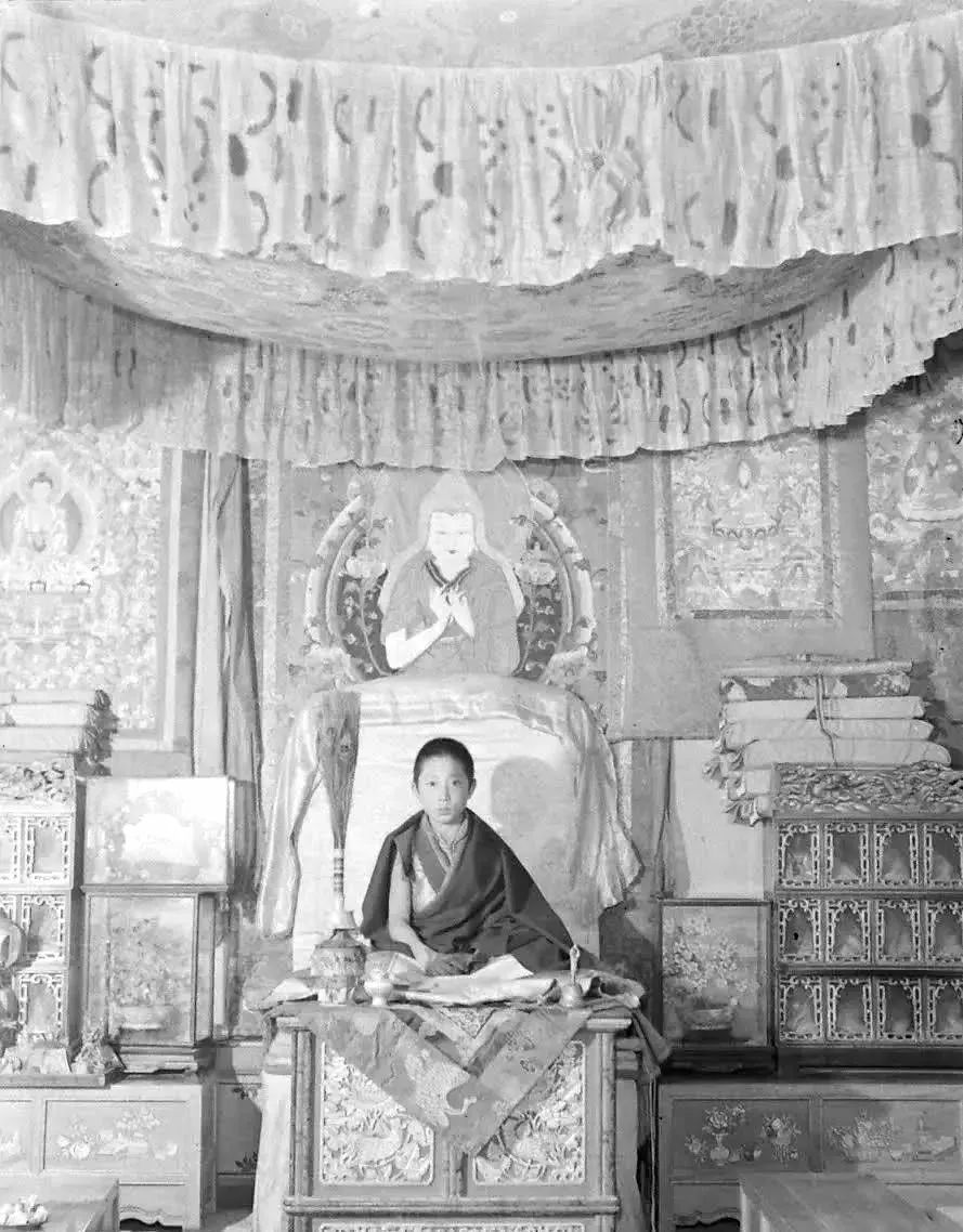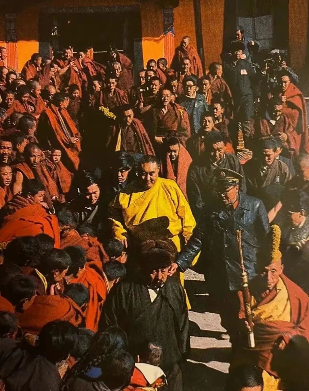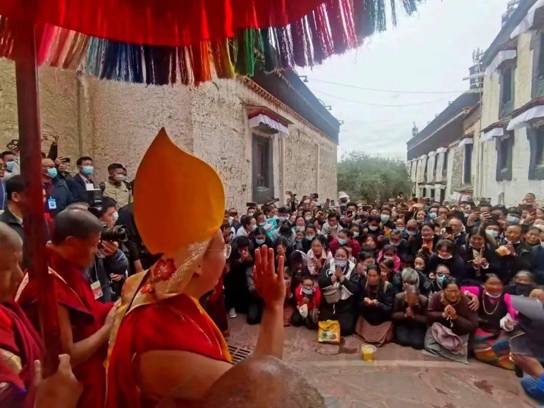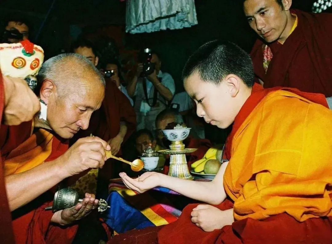 ཀྲུང་གོ་ནང་བསྟན་མཐུན་ཚོགས་ཀྱི་ཚོགས་གཙོ་ཀྲའོ་ཕུ་ཁྲུའུ་ཡིས་པཎ་ཆེན་སྐུ་ཕྲེང་བཅུ་གཅིག་པར་མཇལ་བཞིན་པ།