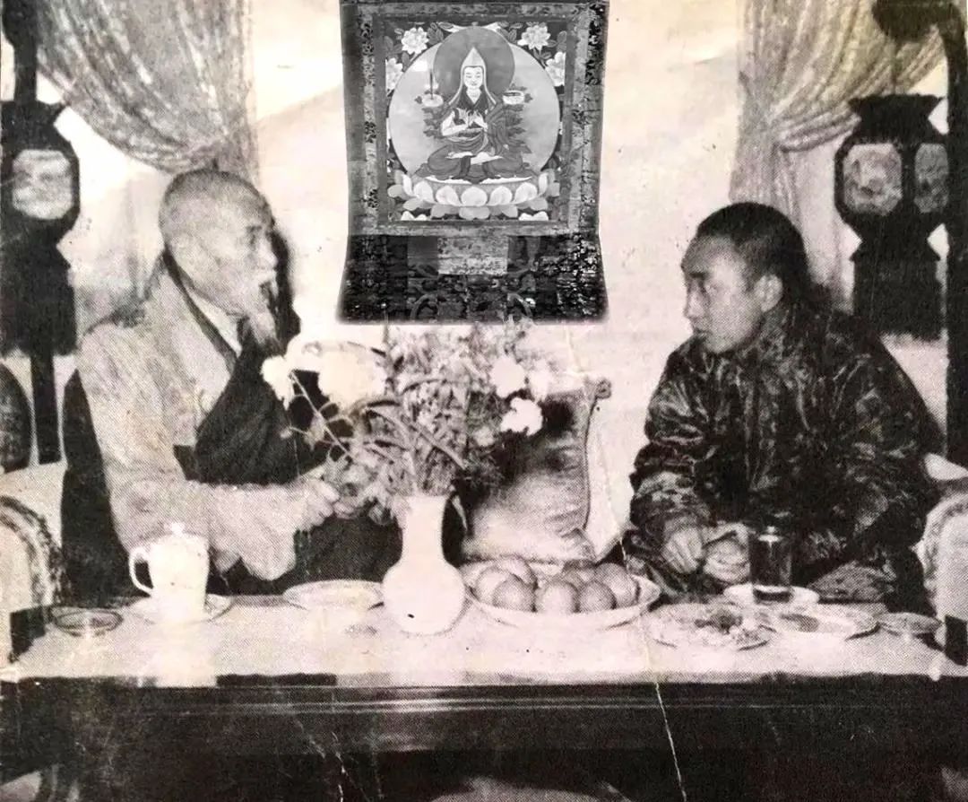 པཎ་ཆེན་སྐུ་ཕྲེང་བཅུ་པ་རྒྱ་གར་དུ་འཚམ་འདྲིར་ཕེབས་ཏེ་ཉི་ཧོ་ལུའུ་དང་མཇལ་འཕྲད་གནང་བའི་པར།
