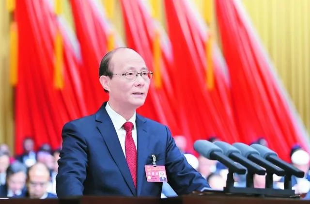 ཧྲིན་ཀྲང་ཝུའུ་ཞའོ་ཅུན་གྱིས་མཚོ་སྔོན་ཞིང་ཆེན་མི་དམངས་སྲིད་གཞུང་གི་ཚབ་བྱས་ཏེ་ཚོགས་ཆེན་ལ་སྲིད་གཞུང་བྱ་བའི་སྙན་ཞུ་ཕུལ།