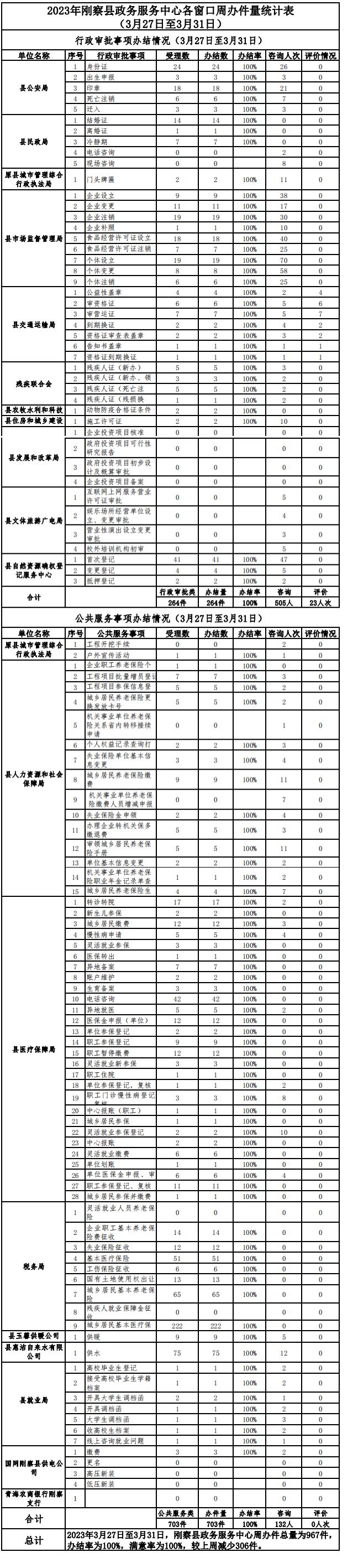 2023年刚察县政务服务中心各窗口周办件量统计表