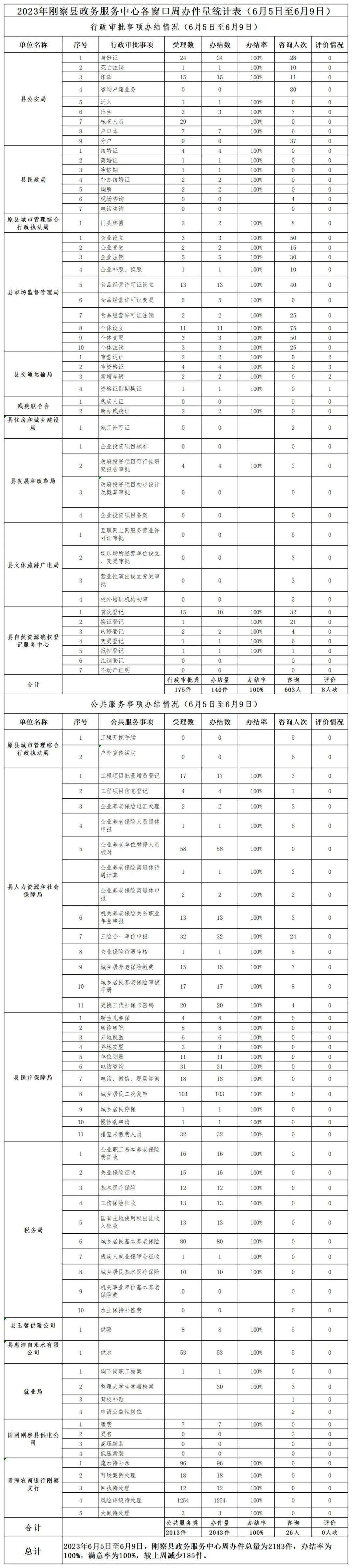 2023年刚察县政务服务中心各窗口周办件量统计表(6月5日至6月9日)