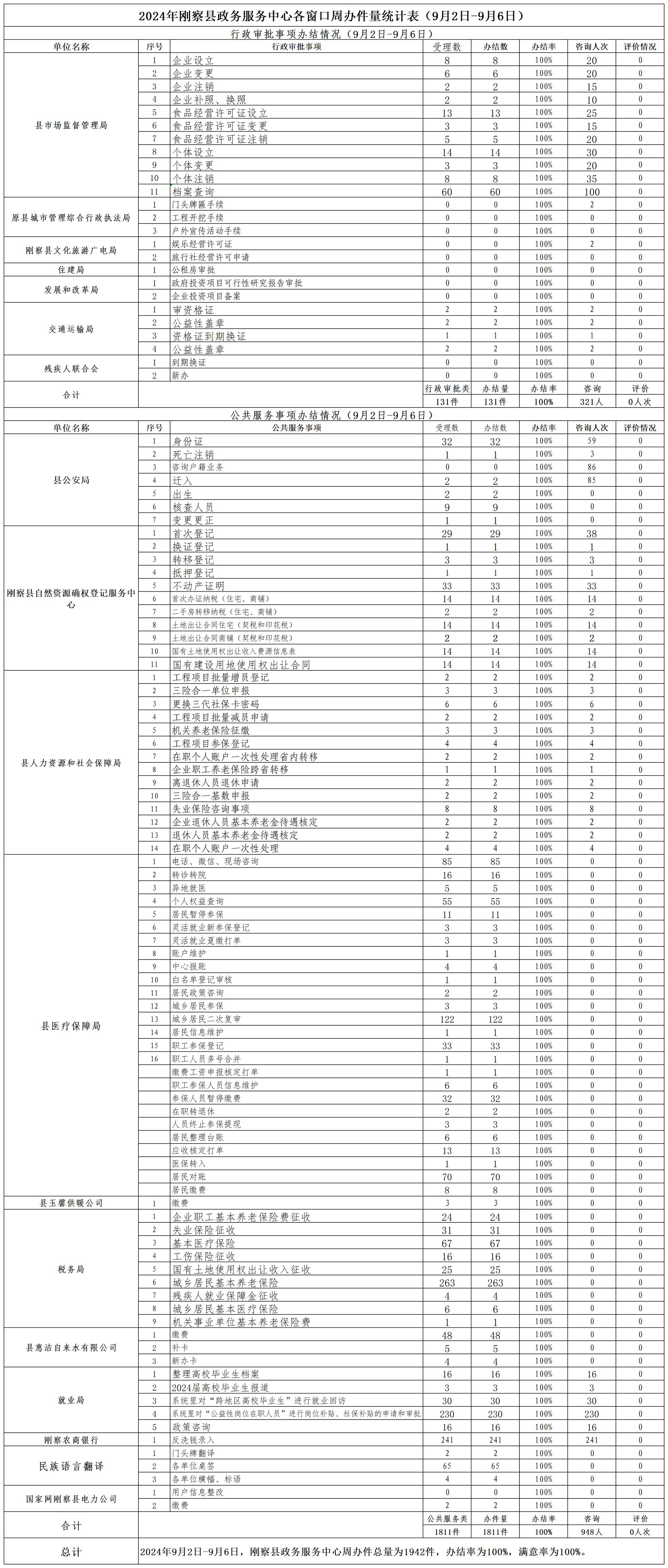 2024年刚察县政务服务中心各窗口周办件量统计表(9月2日—9月6日)