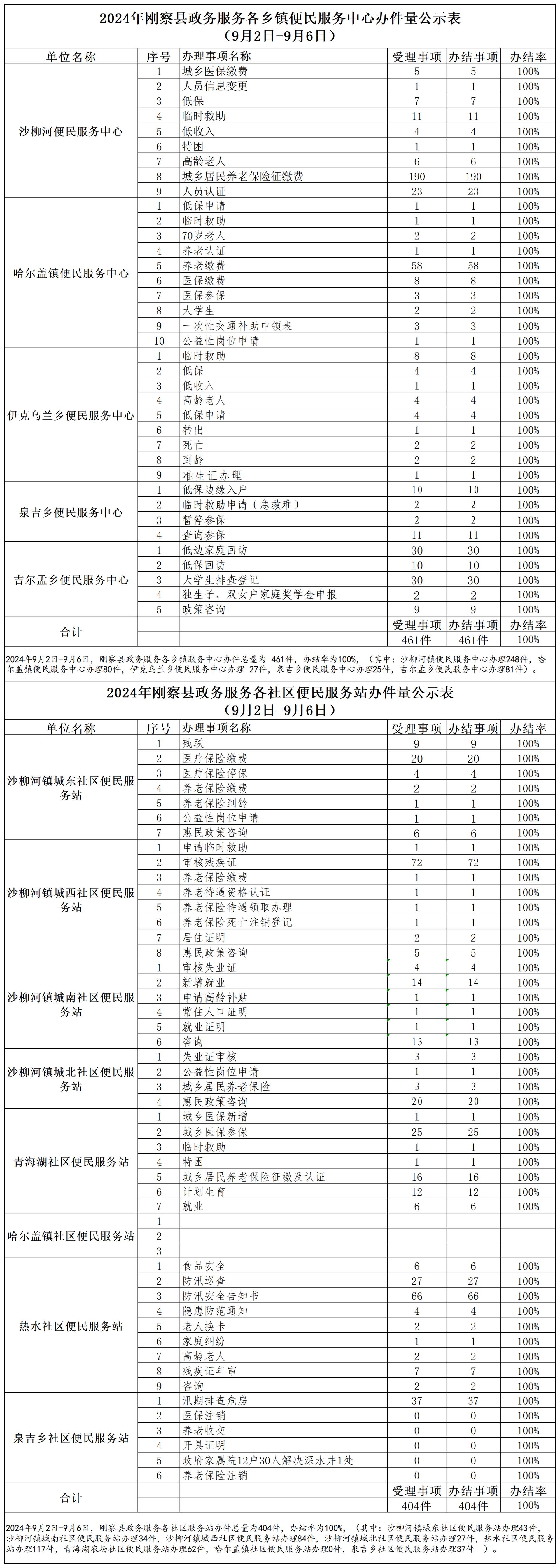 2024年刚察县政务服务各乡镇便民服务中心办件量公示表