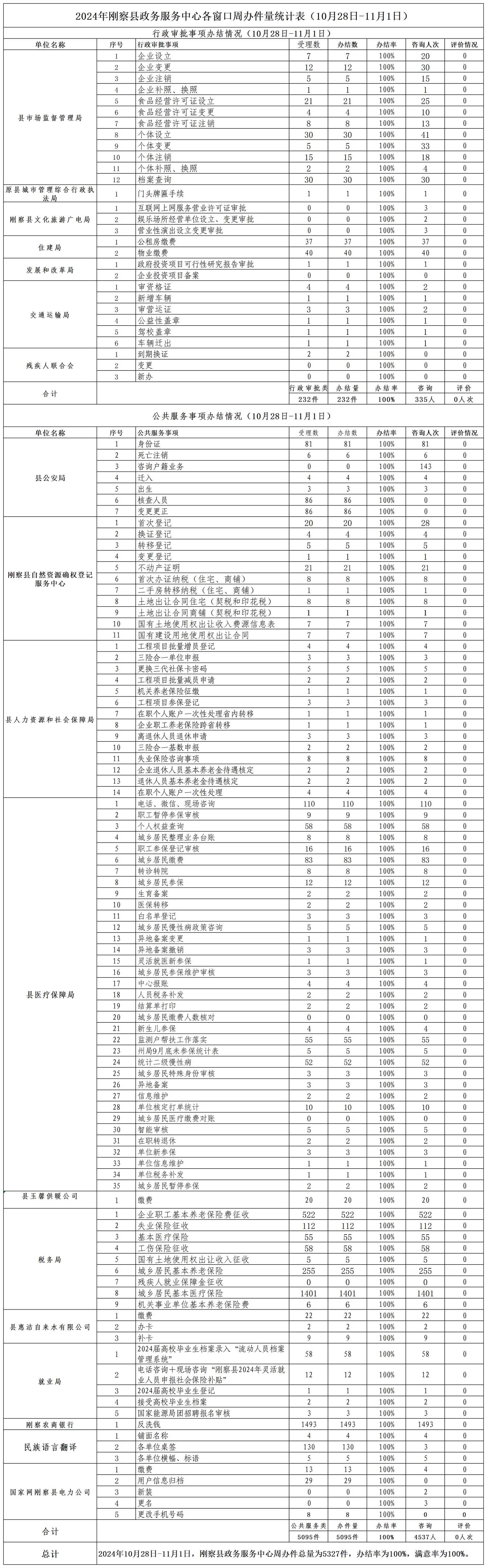 2024年刚察县政务服务中心各窗口周办件量统计表(10月28日—11月1日)