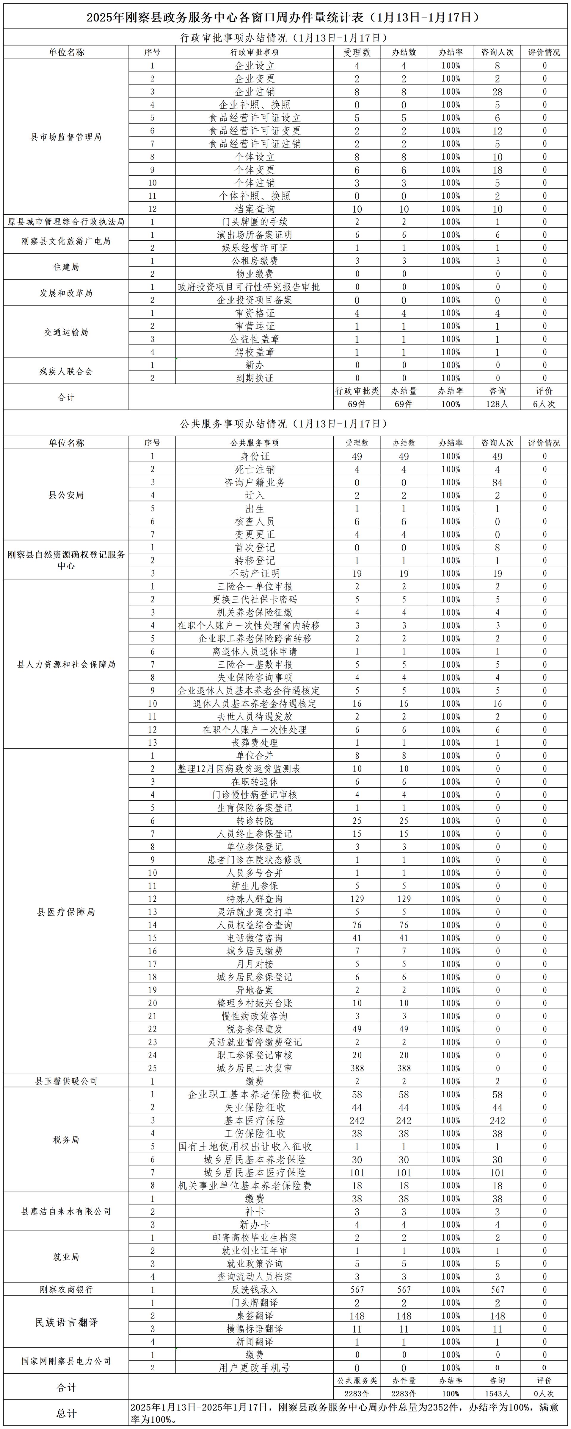 2025年刚察县政务服务中心各窗口周办件量统计表(1月13日—1月17日)