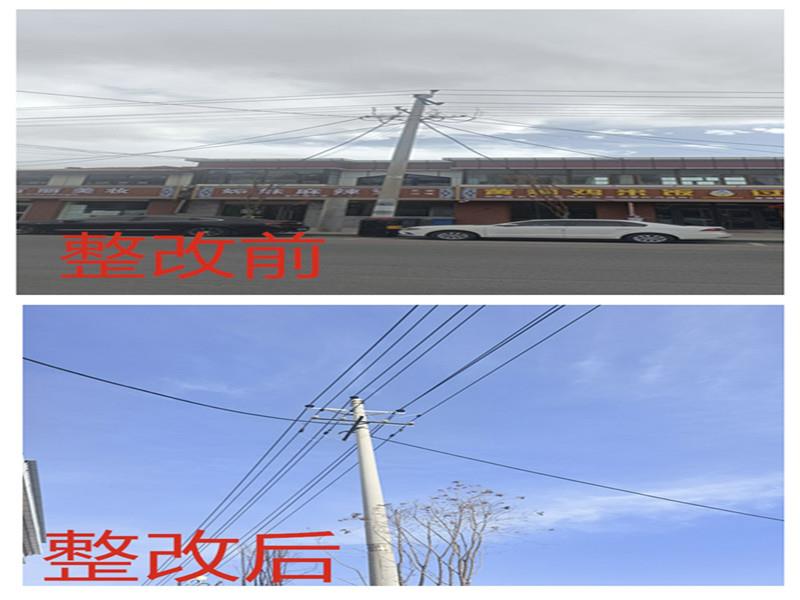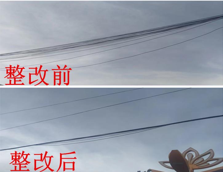 国网青海省电力公司刚察县供电公司整治电力线路问题16项,其中:解决城区315国道路北侧低压下户线混乱问题13处,跨路混乱问题2处,拆除低压杆塔1基。围绕下户线混乱问题向州供电公司申报整治项目,项目已完成可研,争取2026年落地,现阶段将对临街下户线混乱问题进行临时性整治处理。